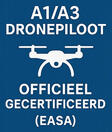 Officieel A1/A3 gecertificeerd dronepiloot (EASA) – veilig en volgens de Europese regelgeving.